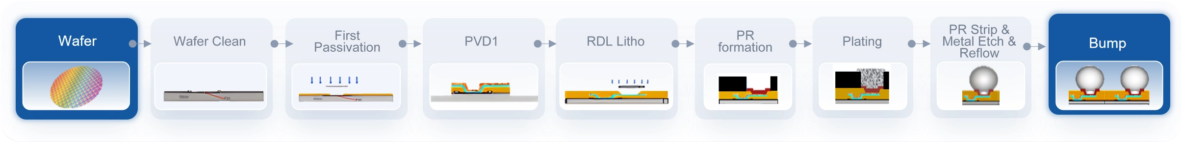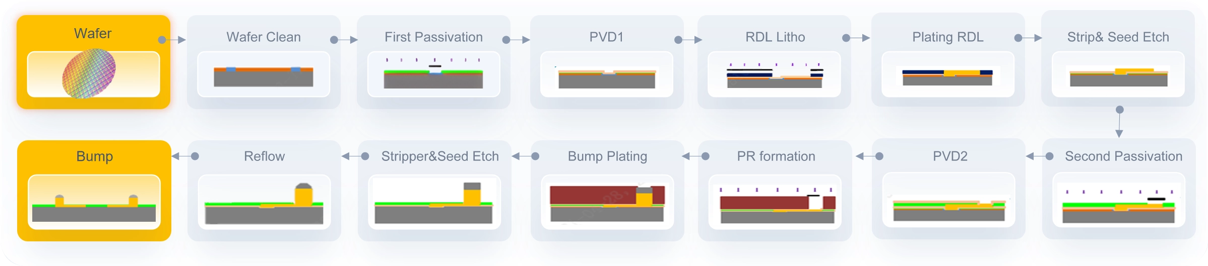| RDL Process | RDL Material | Cu(+Ni/Pd/Au) | Cu(+Ni/Pd/Au) | Cu(+Ni/Pd/Au) | ← |